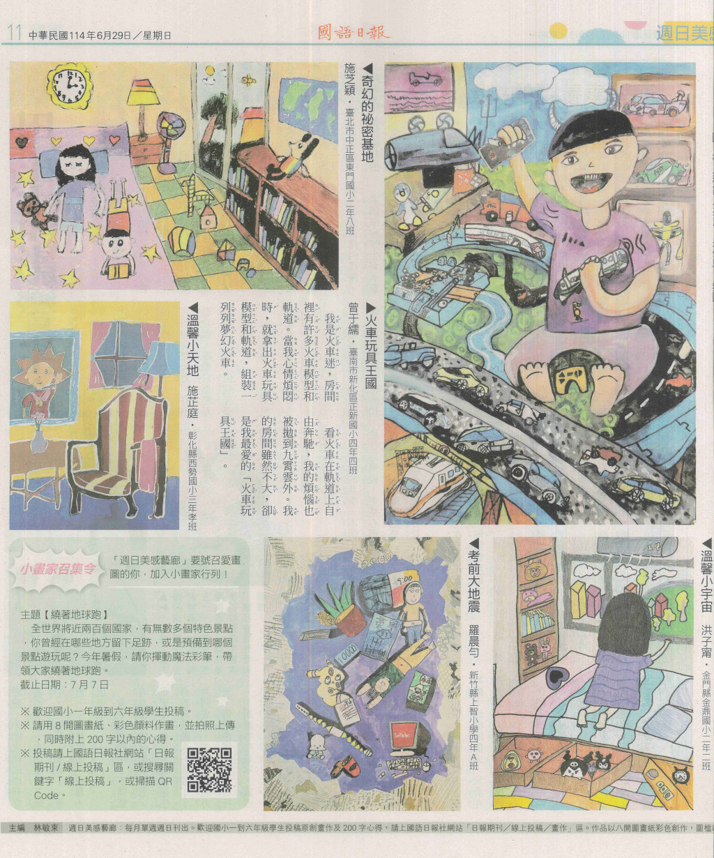 恭喜〜三年孝班施芷庭同學 圖畫作品刊出於114.6.29(日)國語日報第11版週日美感藝廊,全體師生仝賀!