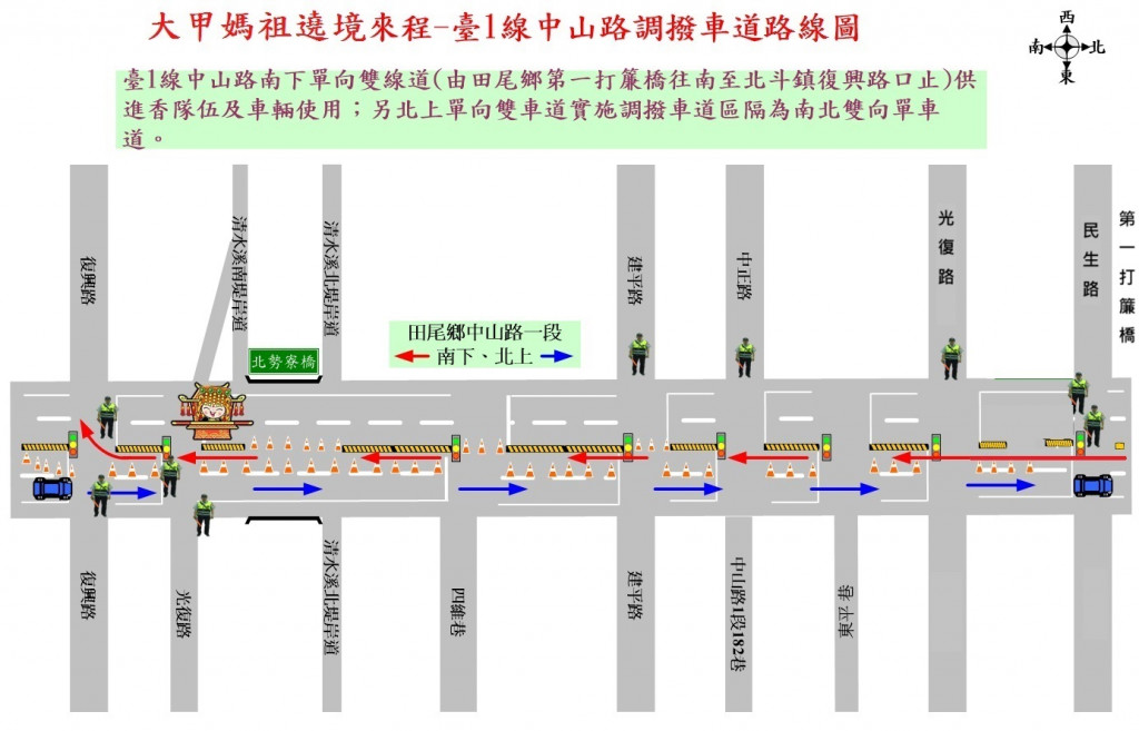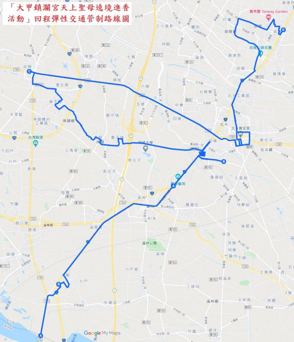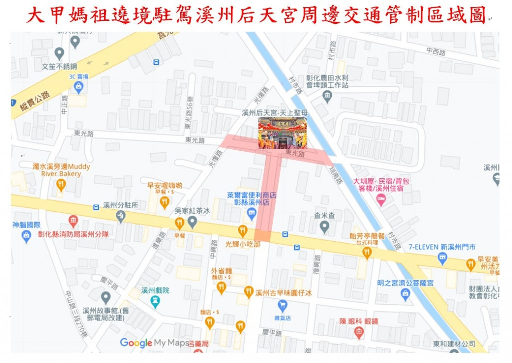彰化縣警察局北斗分局為維護115年4月19日「大甲鎮瀾宮天上聖母遶境進香活動」行經期間交通秩序,將視交通狀況彈性管制車輛,管制區域請查照附件檔案。